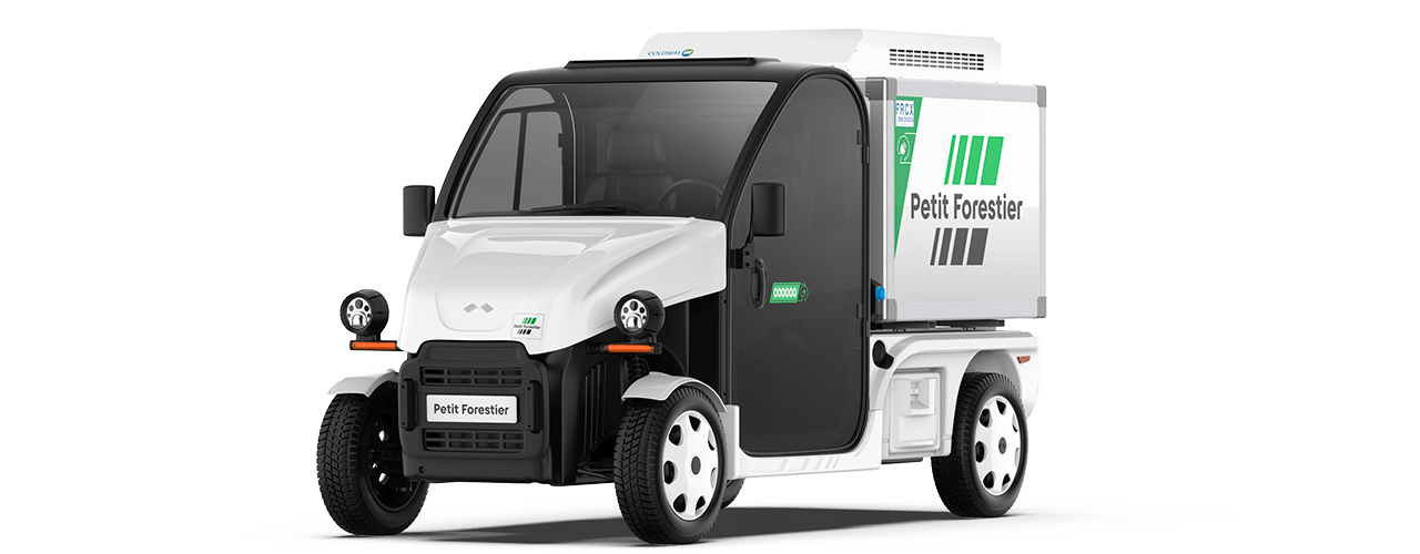 Ce véhicule électrique frigorifique propose un volume utile de 1,2 m³ et une charge maximale de 300 kg pour la livraison de vos produits frais. Il est équipé d’un groupe frigorifique en froid positif (de 0°C à +12°C) qui se recharge en 7 heures sur une prise secteur 220 V. Le véhicule, quant à lui, dispose d’une autonomie de 40 km environ et se recharge aussi en 7 heures sur une prise secteur 220 V.