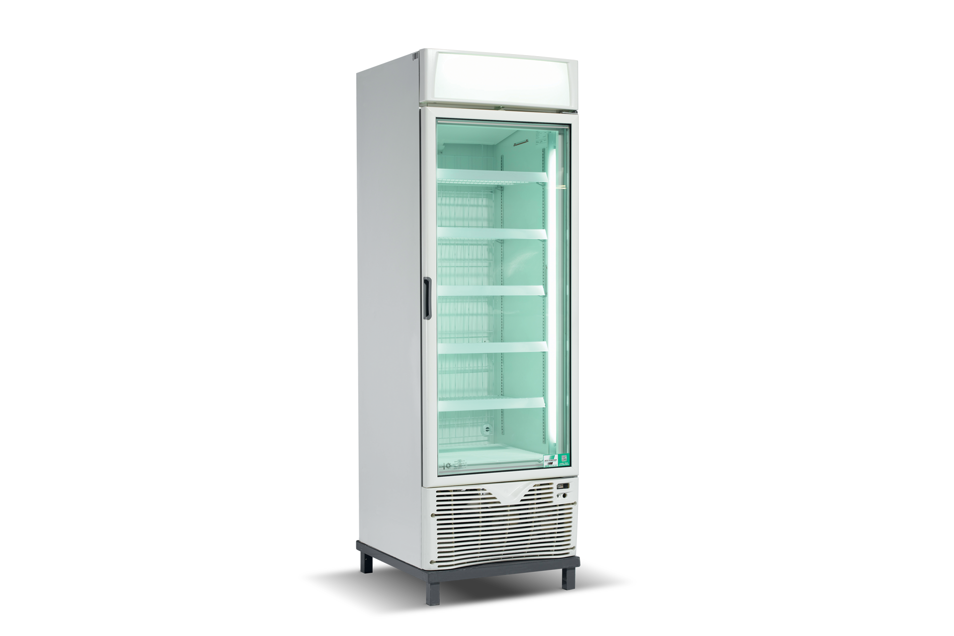 Une solution de stockage clé en main avec cette armoire réfrigérée à porte vitrée.