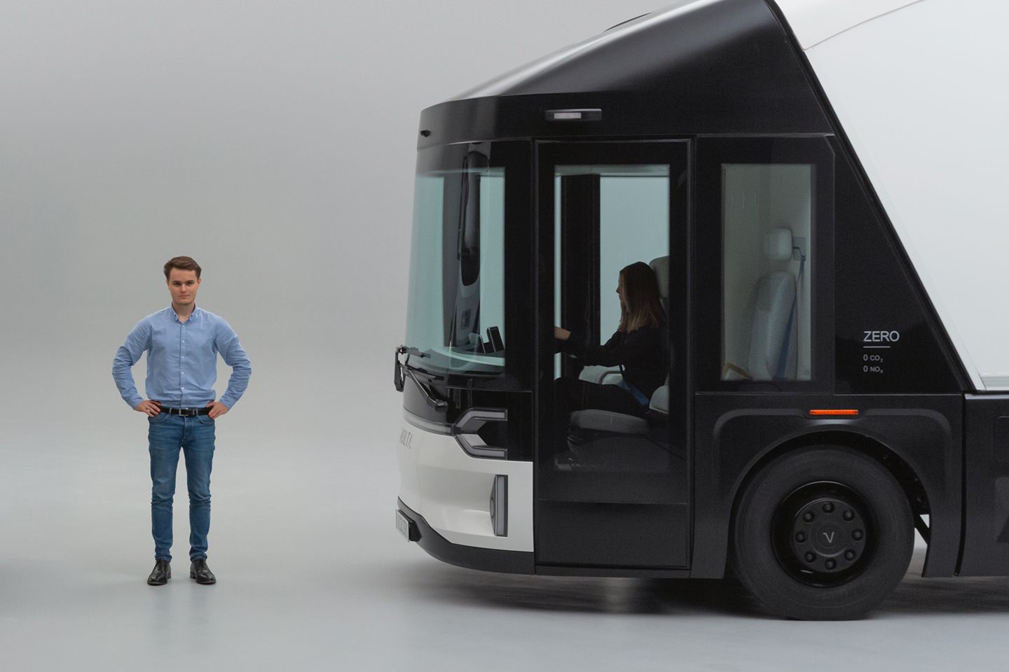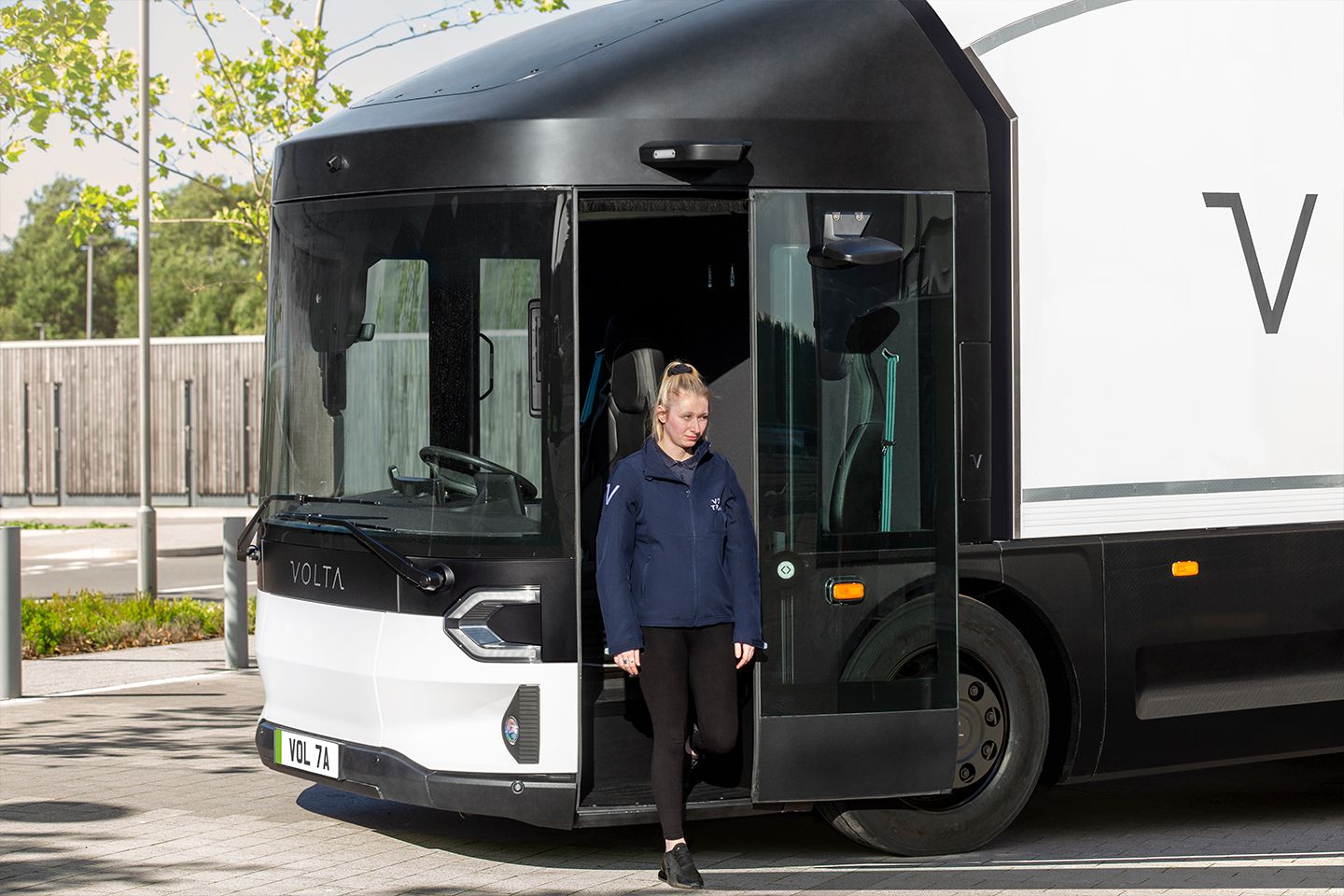Une cabine spacieuse avec une accessibilité facilitée en 2 marches, une caméra de recul, des caméras 360°, des caméras rétroviseurs, un étrier latéral télescopique 3 marches, un hayon élévateur rétractable et bien d'autres innovations… Avec Le Volta Zero, le confort de conduite égale le confort de travail.
