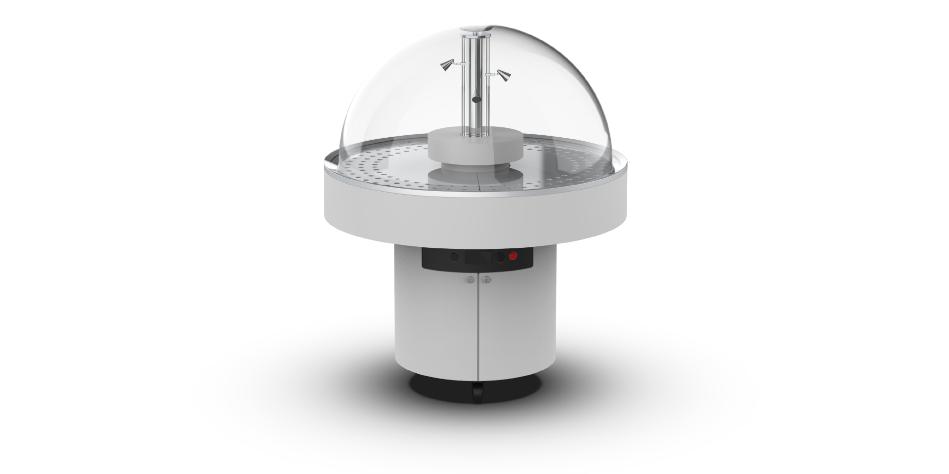 De originele vorm van deze koelvitrine springt direct in het oog!