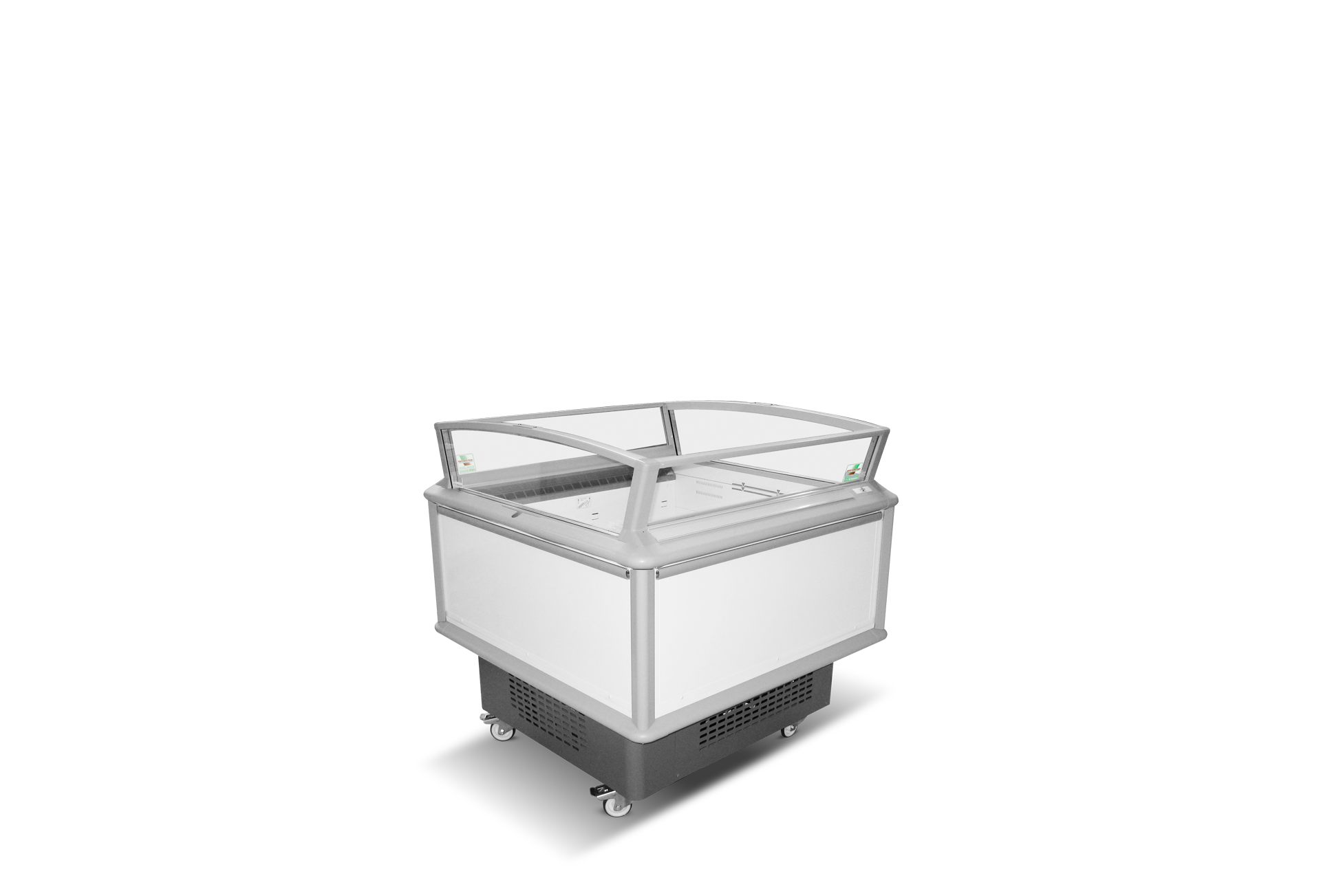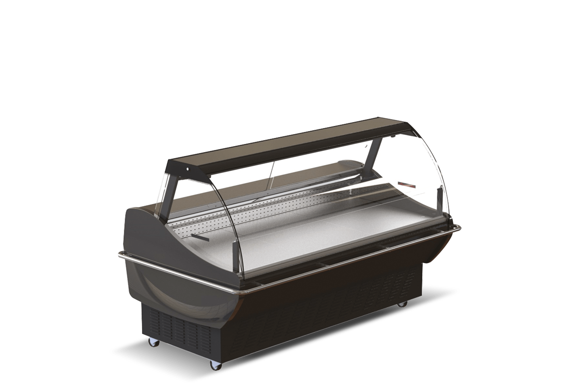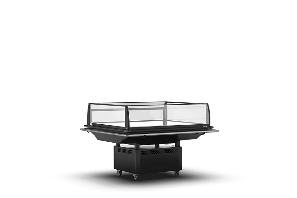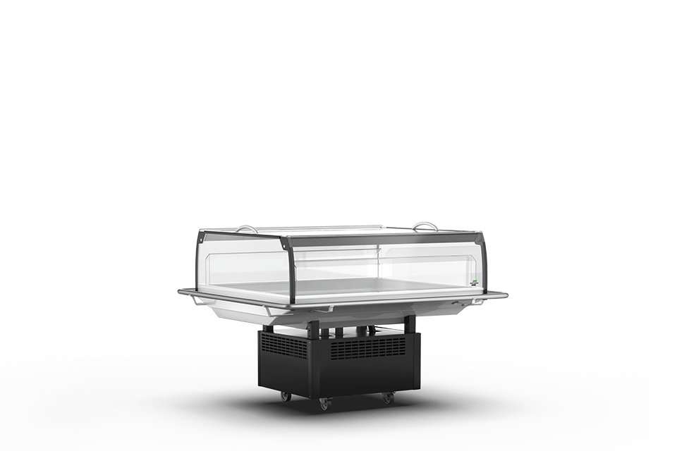 Uma vasta gama de expositores e vitrinas self-service, vitrinas com abertura traseira e armários com porta envidraçada, bem como uma variedade de acessórios: cortina de noite, rodas direcionais, suporte, indicador de temperatura, janela deslizante, grelha de apresentação, separadores de produtos, etc.